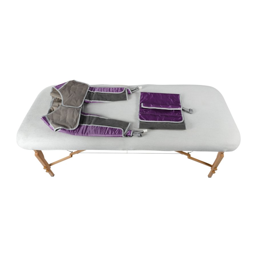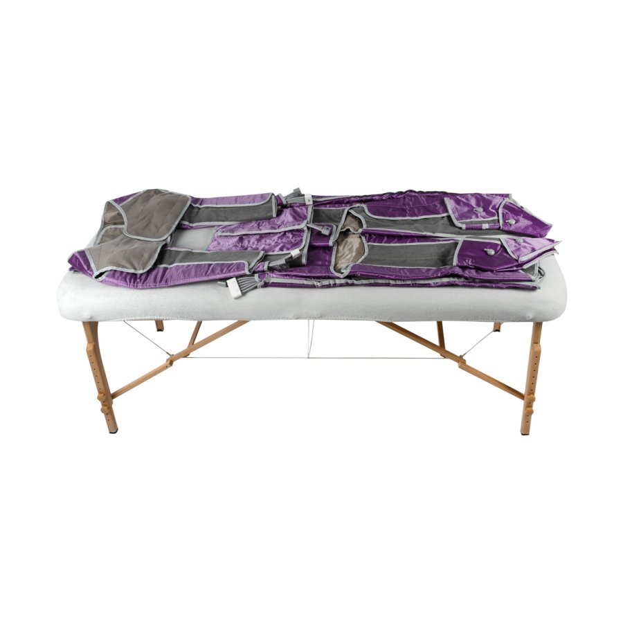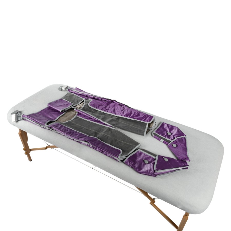 Принцип работы аппарата - воздействие на мягкие ткани сжатым воздухом переменного давления. В рамках одной процедуры, можно добиться многоцелевого эффекта, так как данный вид массажа активно стимулирует кожные покровы, мышцы, кровеносные и лимфатические сосуды.